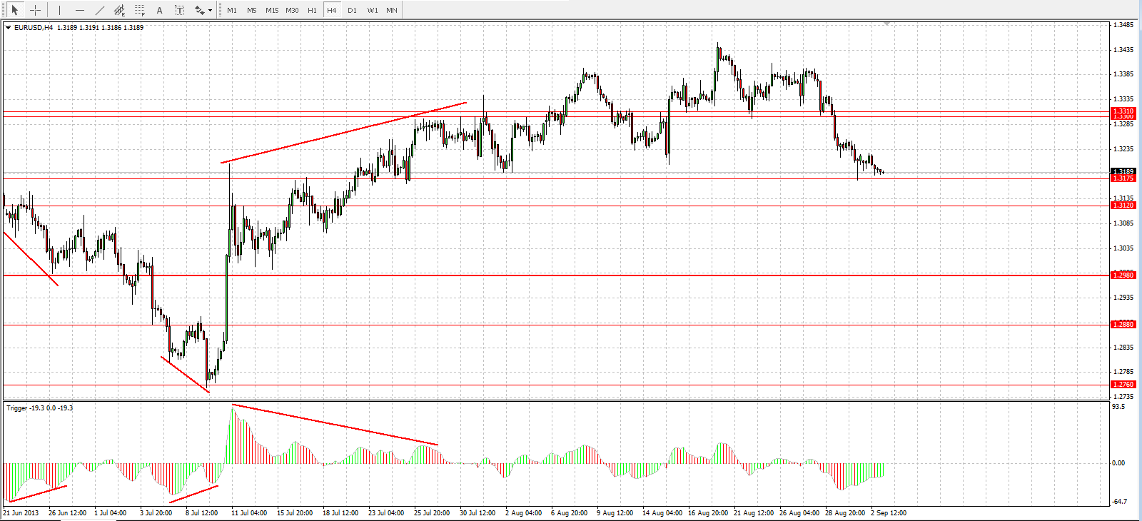Торги в понедельник прошли в узком ценовом диапазоне и завершились вблизи минимумов недели. Сегодня уровень дневного разворота расположен на отметке 1.3199. По-прежнему актуальны дивергенции на графике Н1 — краткосрочный сигнал на покупку., на графике D1 — среднесрочный сигнал на продажу. На сегодня ожидаем разворот пары EUR/USD от минимумов с целью 1.3225 и с потенциалом роста 1.3300., наиболее подходящие уровни для покупок: 1.3190.