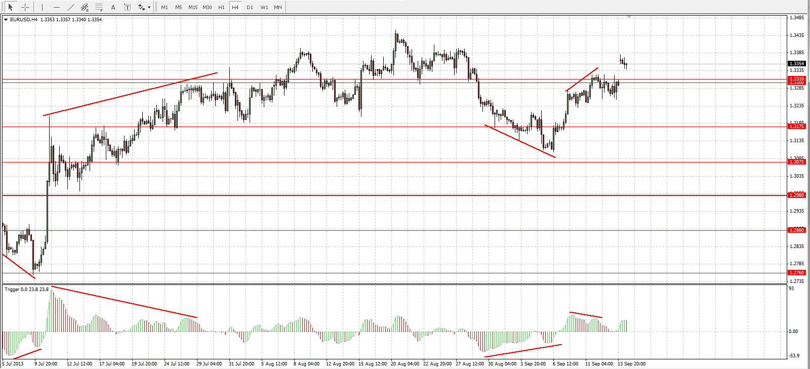 Торговая неделя открылась гэпом вверх чуть более 60 пунктов, который пока еще не перекрыт. На предстоящую неделю по-прежнему ожидаем разворот пары EUR/USD, так как на графике D1 сформировалась дивергенция, сильный сигнал на продажу. Сегодня уровень дневного разворота расположен на отметке 1.3289. Ожидаемый диапазон на предстоящую неделю 1.3460/1.3075. Сегодня будем придерживаться медвежьего сценария, так как гэп еще не перекрыт, наиболее подходящие уровни для продажи: 1.3460., уровни покупок: 1.3300.