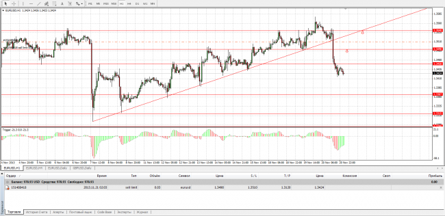 Сработал очередной стоп, выставляем лимитный ордер на продажу от 1.3490.