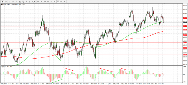 Торги в четверг полностью соответствовали нашему прогнозу, уровень продаж 1.3660 и внутридневной целевой уровень 1.3580 были отработаны. Сегодня уровень дневного разворота расположен на отметке 1.3587. На графике D1 был пробит уровень 100 дневной скользящей средней, который расположен на отметке 1.3590. Так же стоит отметить, что день закрылся на своих минимумах, что говорит о силе медведей и сегодня вероятно ждать продолжение снижения пары USD/USD. В пятницу будем придерживаться медвежьего сценария развития событий, но так же стоит ожидать ре-теста пробитого уровня 100 дневной скользящей средней. Наиболее подходящие уровни для продажи: 1.3590 с внутридневным целевым уровнем 1.3510 и возможно 1.3480.