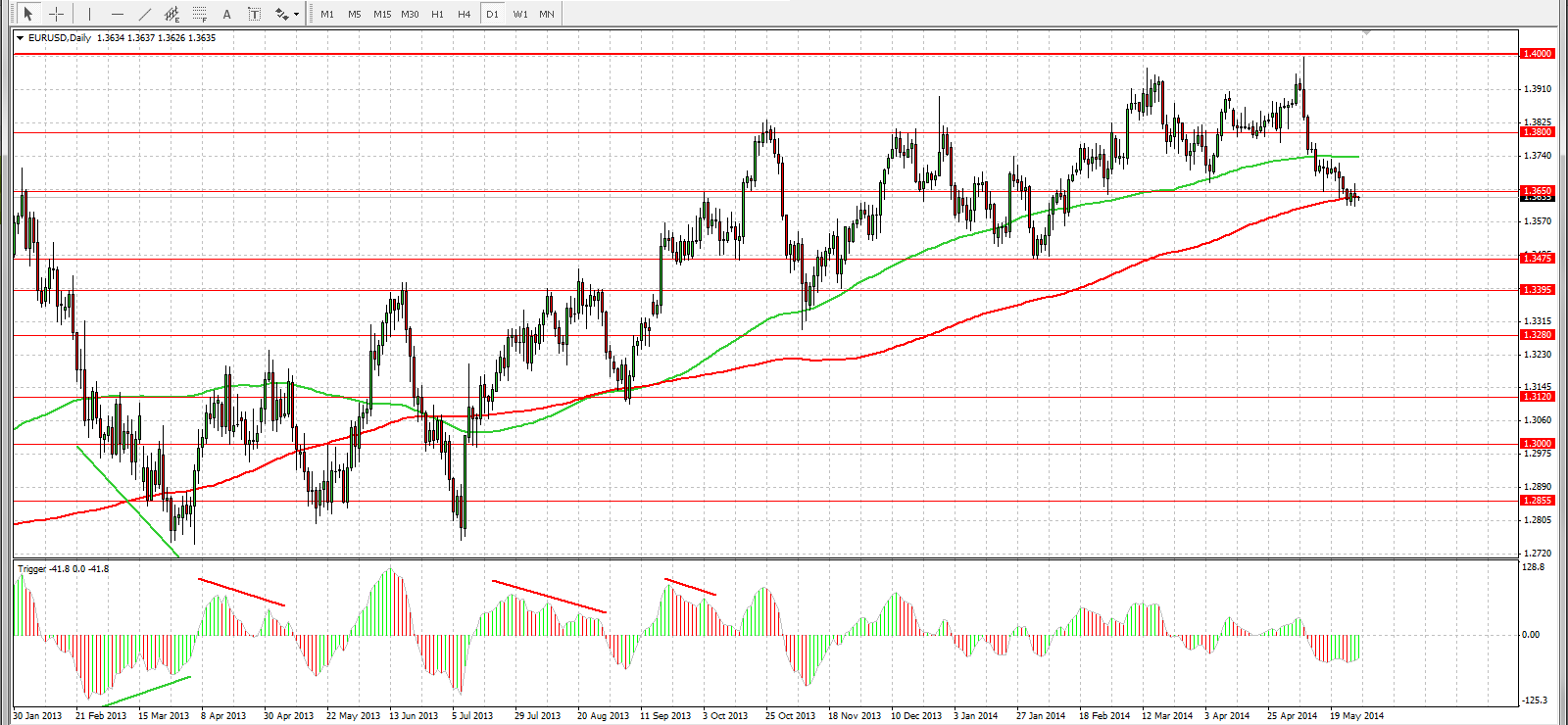 На графике D1 отмечены ключевые уровни пары EUR/USD.