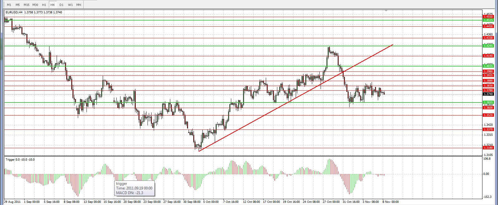 я тут на М1 залез, проанализировать решил. Так там столько сигналов на покупку и на продажу появляется, особенно если масштаб уменьшить посильнее, то разные фигуры разворотов видны, которые на часе ввиде двух свечей (вверх-вниз или наоборот), там это все фигуры. и все отрабатываются, только вот входить все равно как-то стремно по этому ТФ.