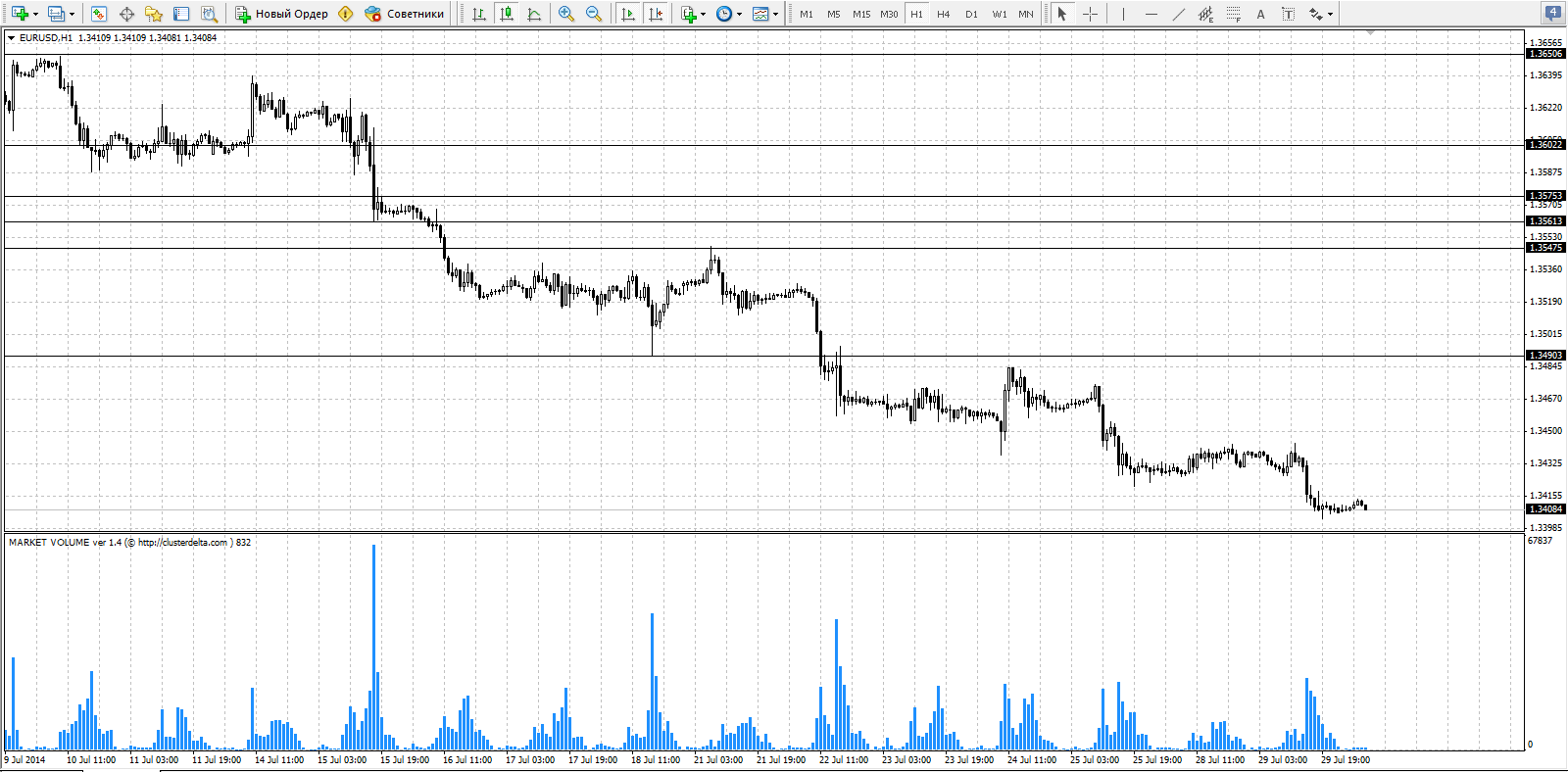 Торги во вторник показали первоначально коррекцию к уровню 1.3444, а далее пара EUR/USD развернулась и снизилась, почти достигнув недельного целевого уровня 1.3400. Сегодня уровень дневного разворота расположен на отметке 1.3418. Стоит отметить вчерашний максимальный объем который расположен на уровне 1.3414. На среду ожидаем тестирование сильного уровня поддержки 1.3400, а далее разворот и рост с внутри-дневным целевым уровнем 1.3445.