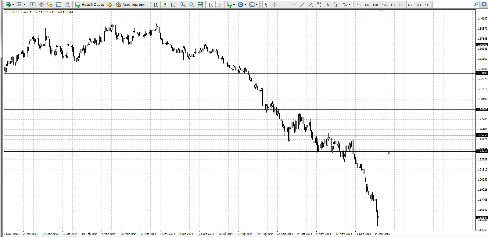 На графике D1 отмечены ключевые уровни пары EUR/USD.