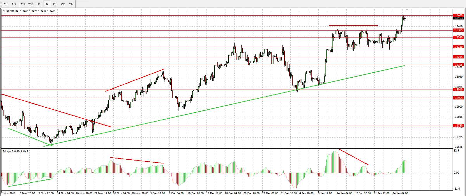 Ценовое движение пары EUR/USD на открытии недели было очень спокойное без какого либо гэпа. На неделю ожидаю боковое движение в диапазоне 1.3480/1.3380, а затем возобновление роста пары. Сегодня уровень дневного разворота расположен на отметке 1.3430. На графике D1 дивергенция практически сломана, так же на графике видно сильное сопротивление в районе уровня 1.3480 которое вероятно местом разворота на коррекцию с целью 1.3380. На сегодня ожидаю снижение пары EUR/USD от уровня 1.3480 с целью 1.3380, а затем возобновление роста пары.